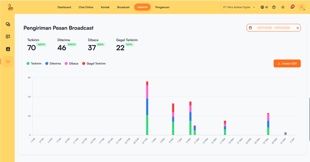 | Total Pesan | Total pesan yang berhasil dikirim dalam broadcast tersebut |