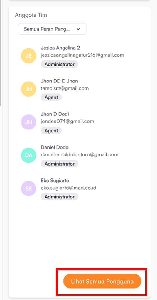 Apabila ingin melihat lebih detail semua pengguna di dalam workspace, silahkan klik Lihat Semua Pengguna