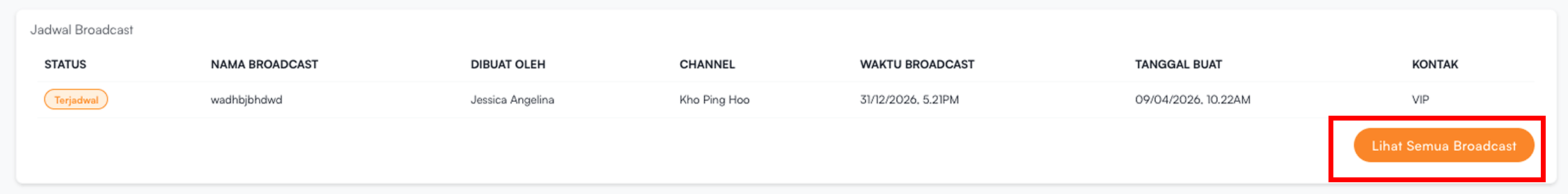 Untuk melihat detail broadcast, pengguna bisa klik tombol Lihat Semua Broadcast.