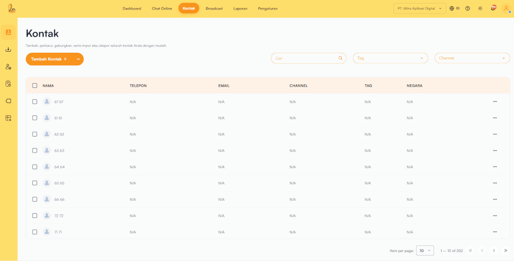 Klik icon Kontak ada menu sebelah kiri, lalu klik kontak yang akan diberikan penanda atau Tag pada setiap kontak sesuai dengan kebutuhan