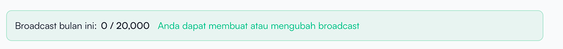 - Saldo Broadcast: Minimum top up: Rp10.000 dan Maksimum top up: Rp5.000.000.